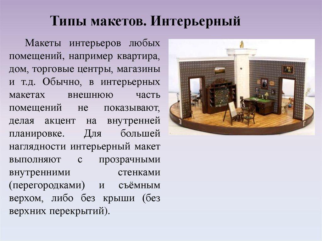 Типы макетов. ИнтерьерныйМакеты интерьеров любых