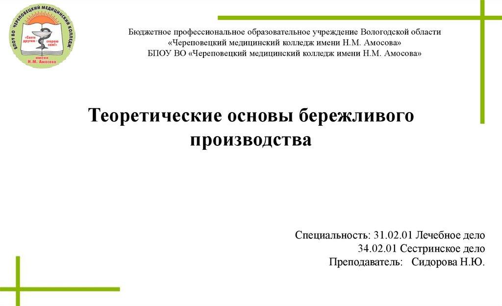 Бюджетное профессиональное образовательное учреждение Вологодской области«Череповецкий медицинский колледж имени Н.М. Амосова»