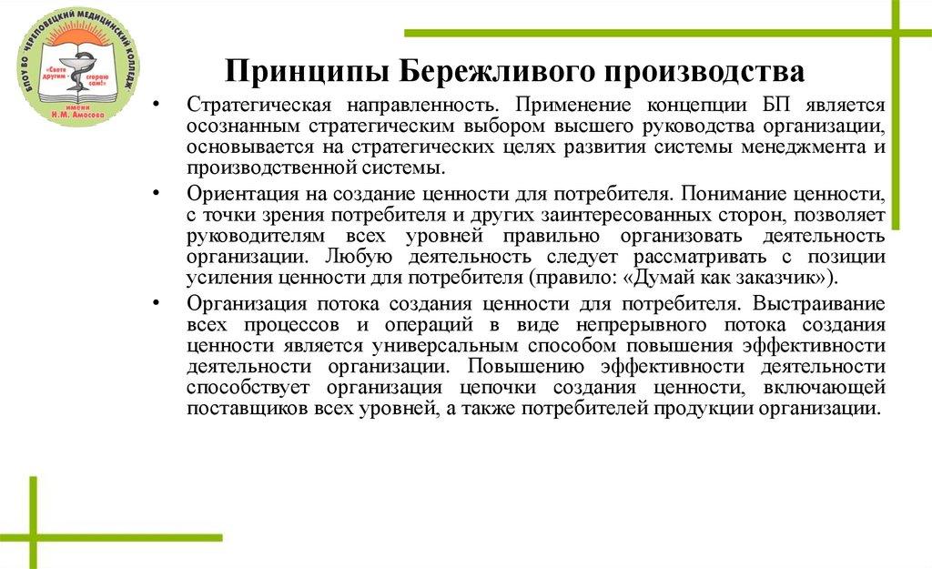 Принципы Бережливого производстваСтратегическая направленность. Применение концепции БП является