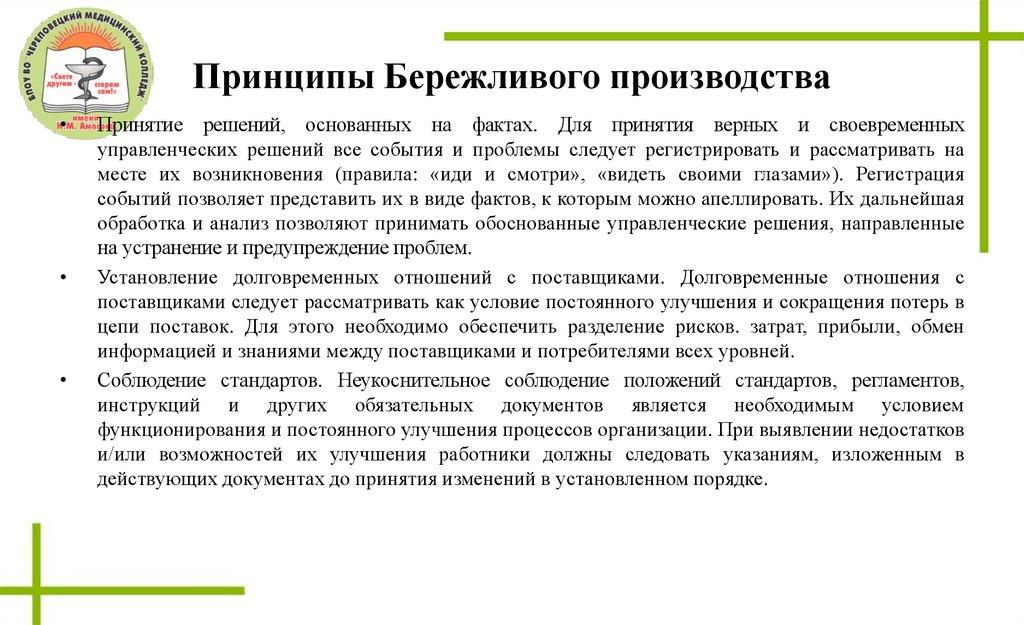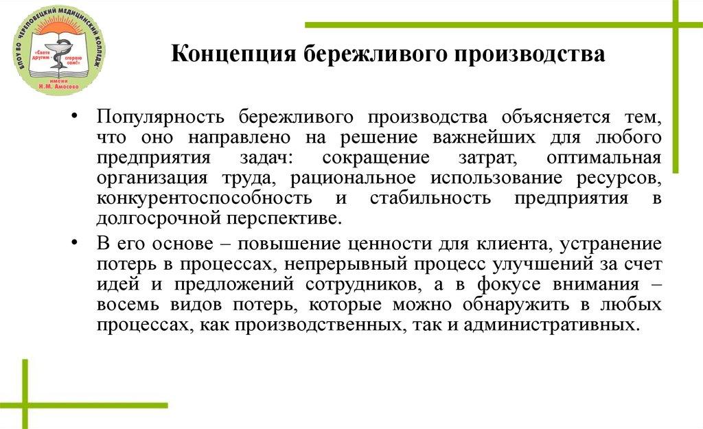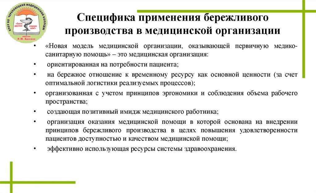 Специфика применения бережливого производства вмедицинской организации