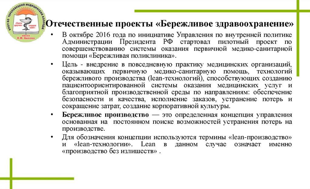 • Отечественный проект «Бережливое