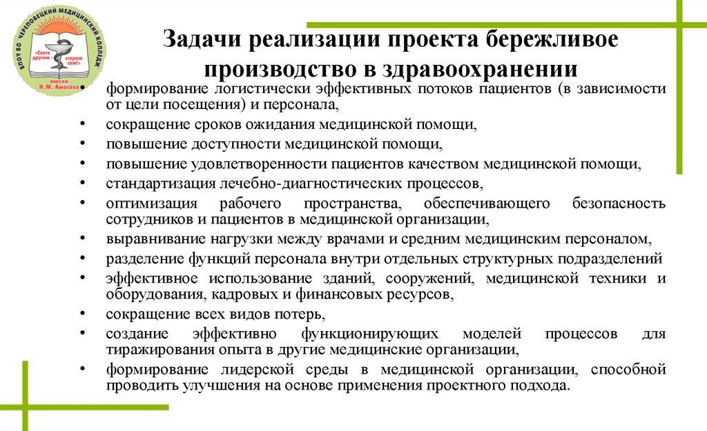 Задачи реализации проекта бережливое