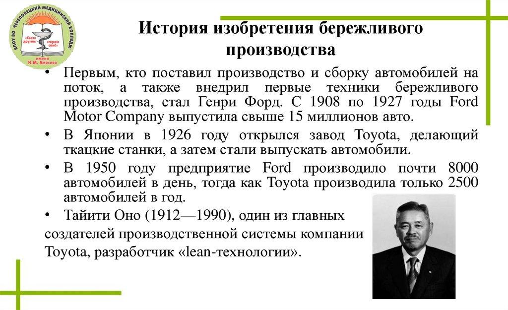 История изобретения бережливогопроизводства