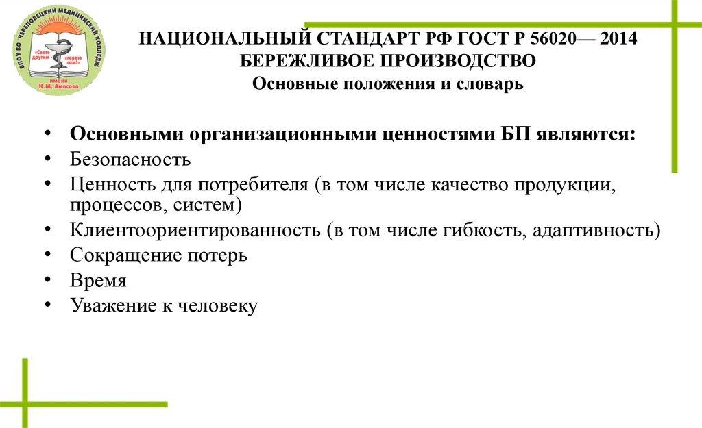 НАЦИОНАЛЬНЫЙ СТАНДАРТ РФ ГОСТ Р 56020— 2014БЕРЕЖЛИВОЕ ПРОИЗВОДСТВО