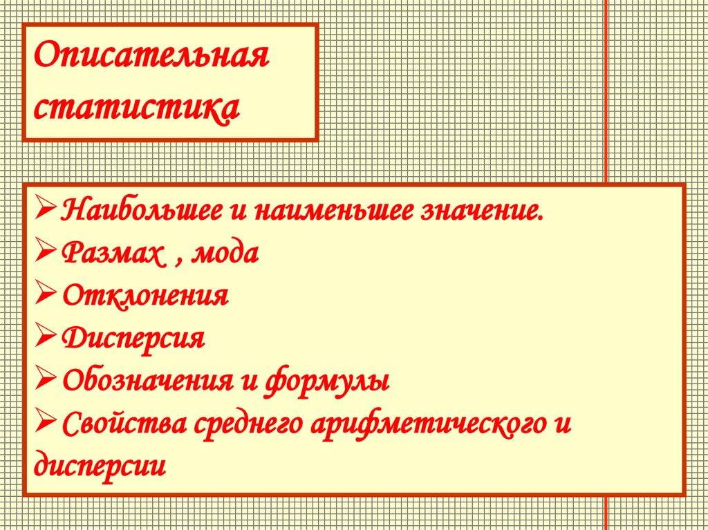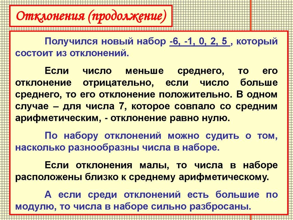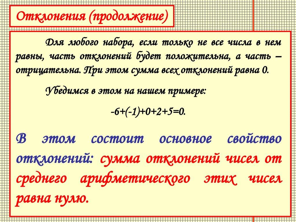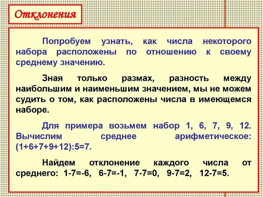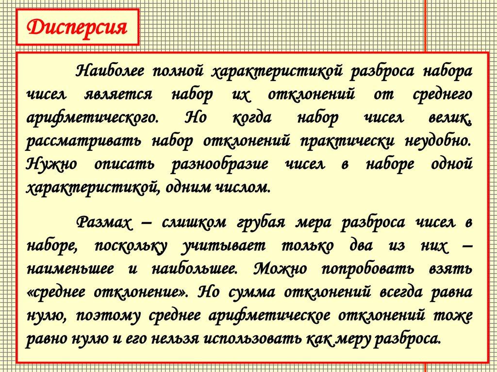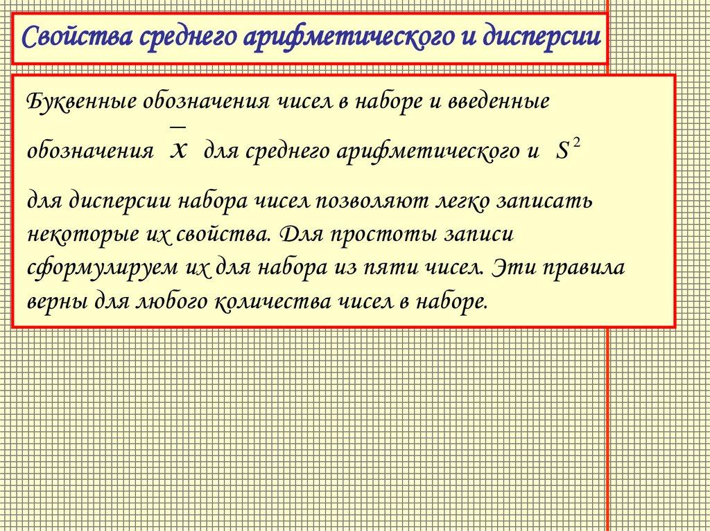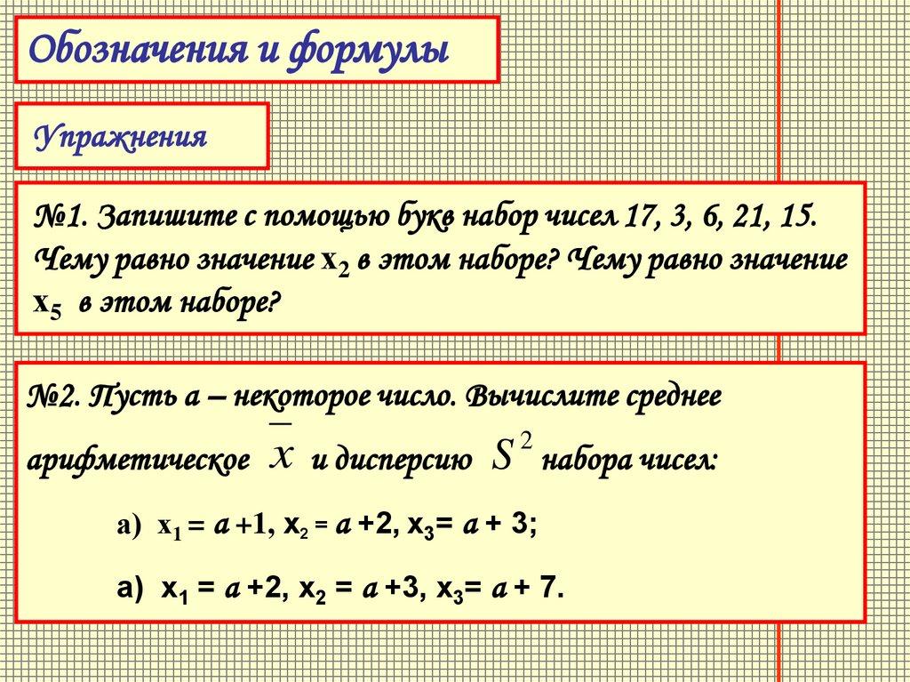 Свойства среднего арифметического и дисперсииБуквенные обозначения чисел в наборе и введенные