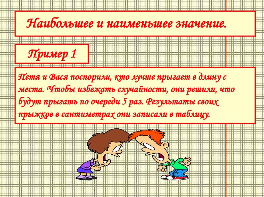 Петя и Вася поспорили, кто лучше прыгает в длину с