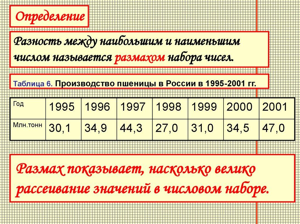 Таблица 6. Производство пшеницы в России в 1995-2001 гг.