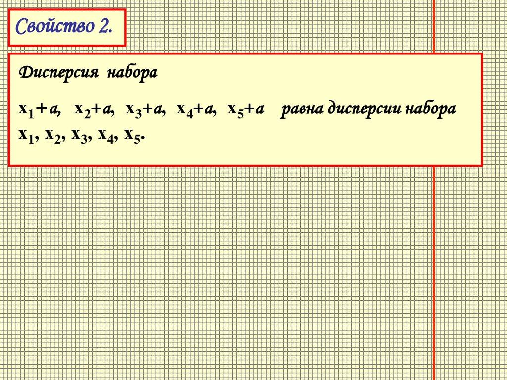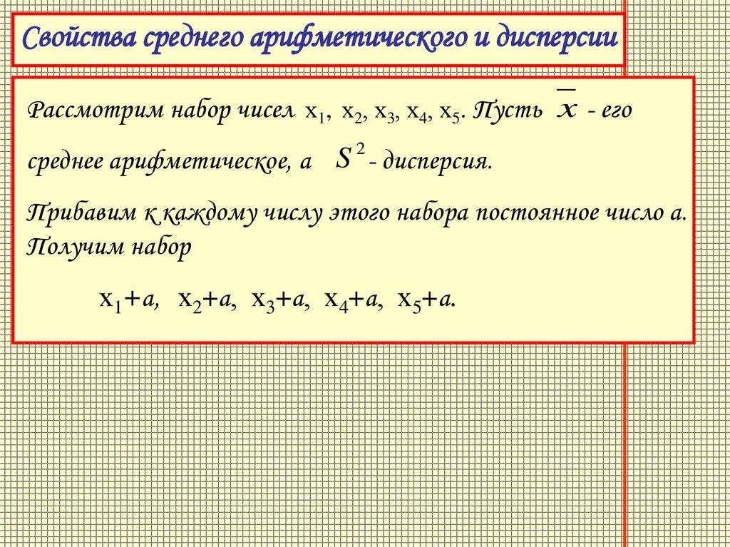 х1+а, х2+а, х3+а, х4+а, х5+а равна дисперсии набора