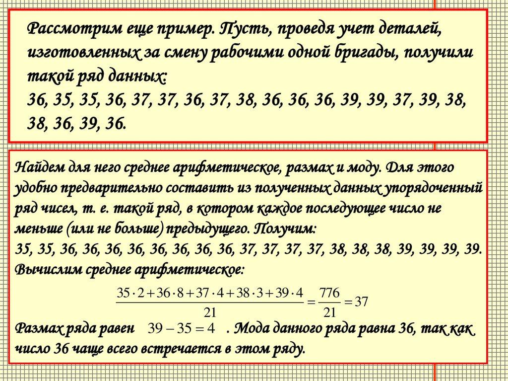 Найдем для него среднее арифметическое, размах и моду. Для этого