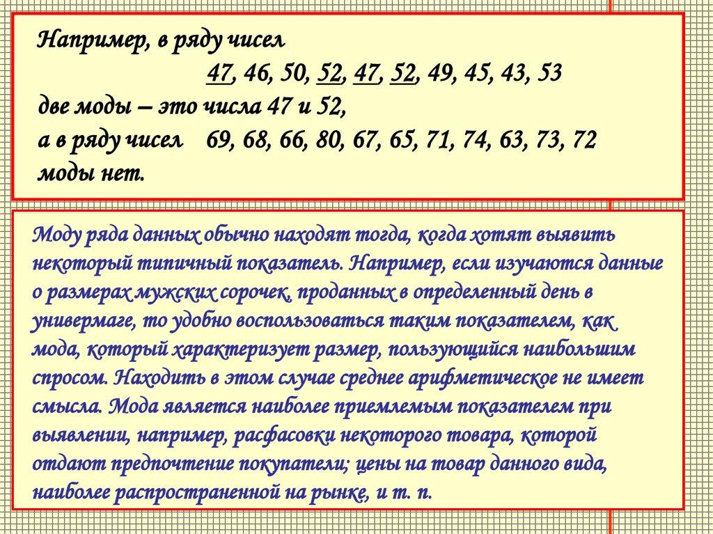 Например, в ряду чисел47, 46, 50, 52, 47, 52, 49, 45, 43, 53