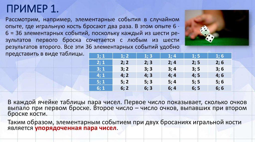 Таким образом, элементарным событием при двух бросаниях игральной кости