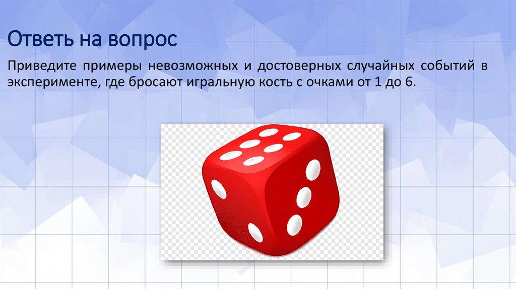 ПРИМЕР 3. Бросание игральногокубика. У игрального кубика (кости)