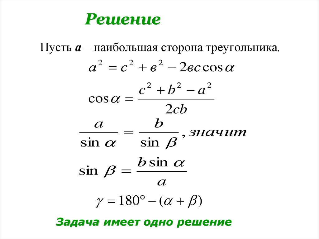 Если γ –острый угол, то сравниваем а и b, выбираем меньшую и