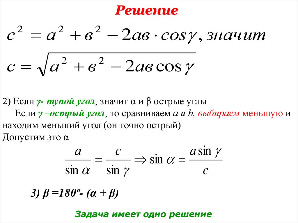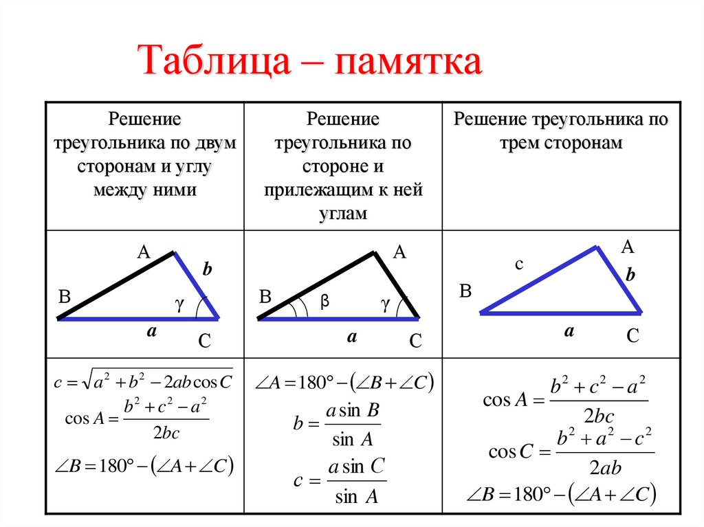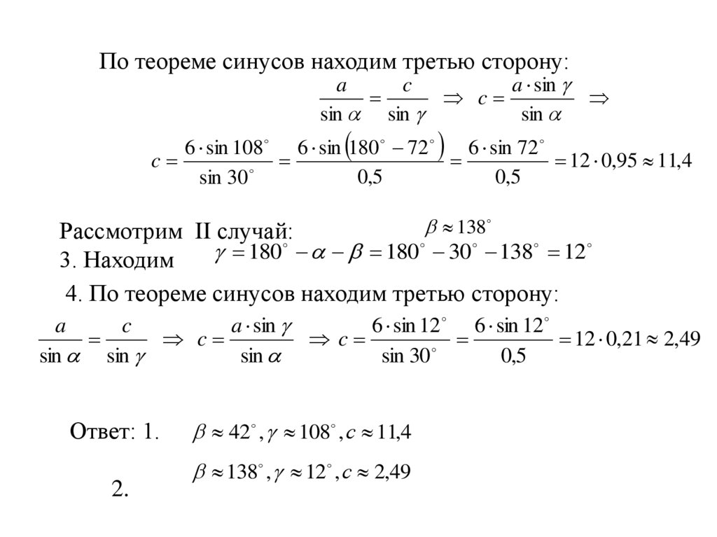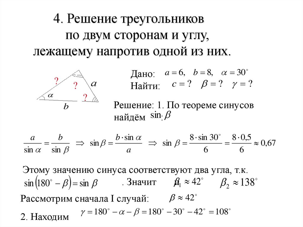 12. 1. Решение треугольников по двум сторонам и углу между ними.