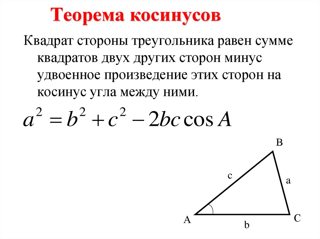 Теорема косинусовКвадрат стороны треугольника равен сумме