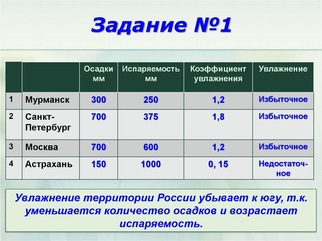 Обеспеченность влагой зависит не только от осадков,но и от t°.