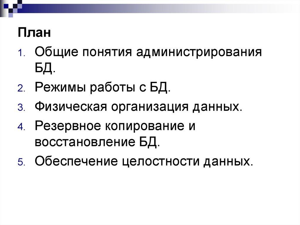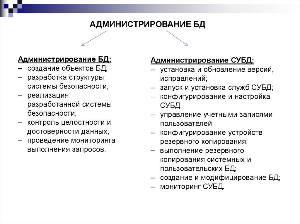 АДМИНИСТРИРОВАНИЕ БДАдминистрирование БД: