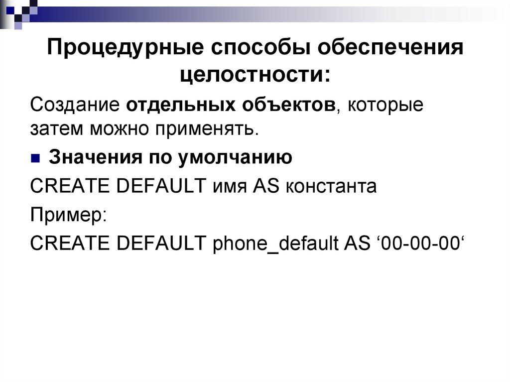 CREATE DEFAULT phone_default AS ‘00-00-00‘