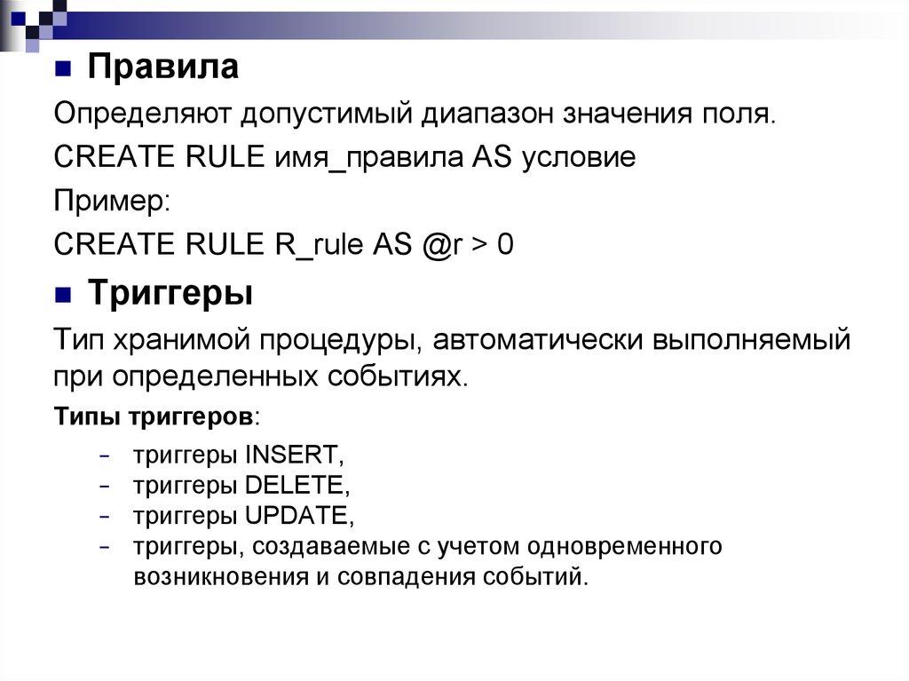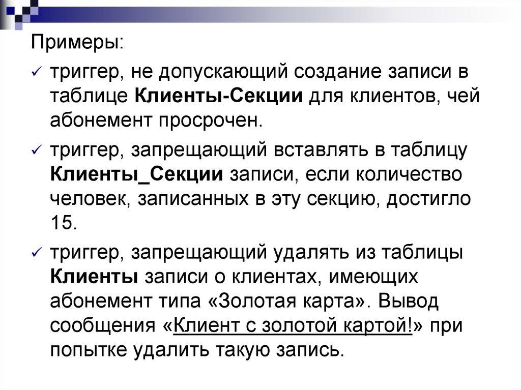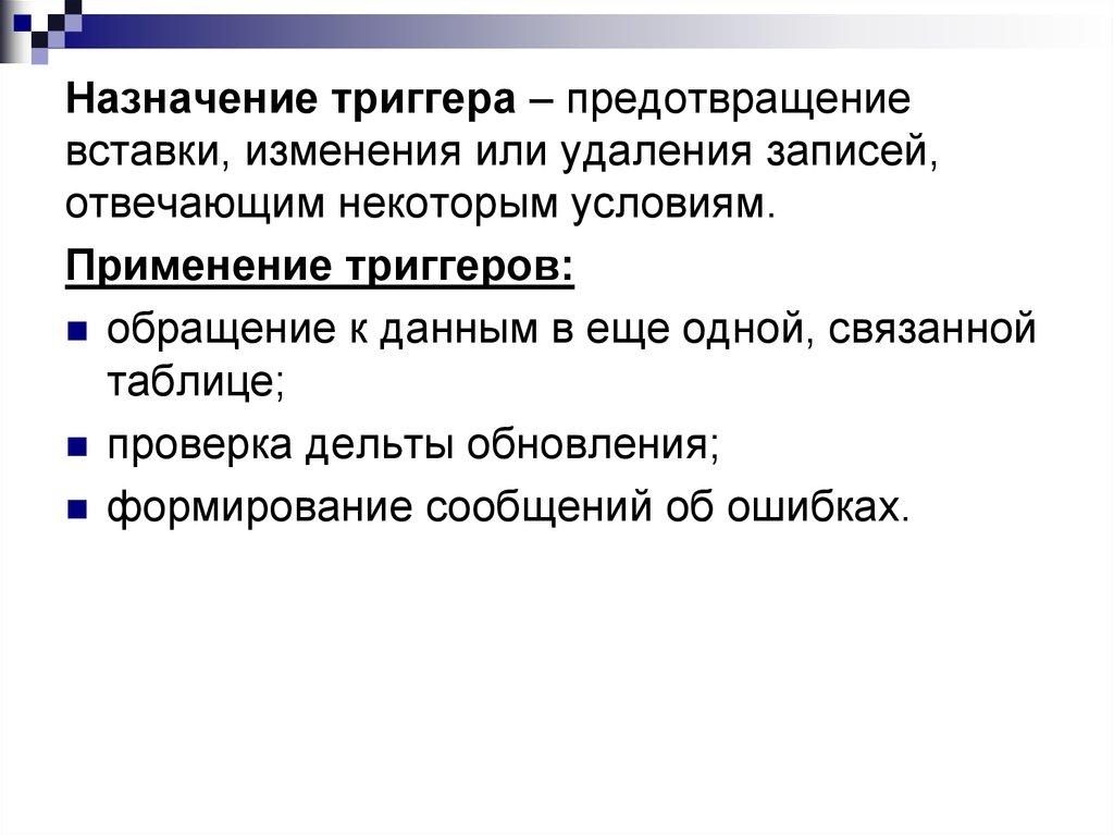 Назначение триггера – предотвращениевставки, изменения или удаления записей,