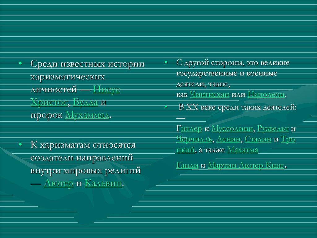 • Среди известных историихаризматических