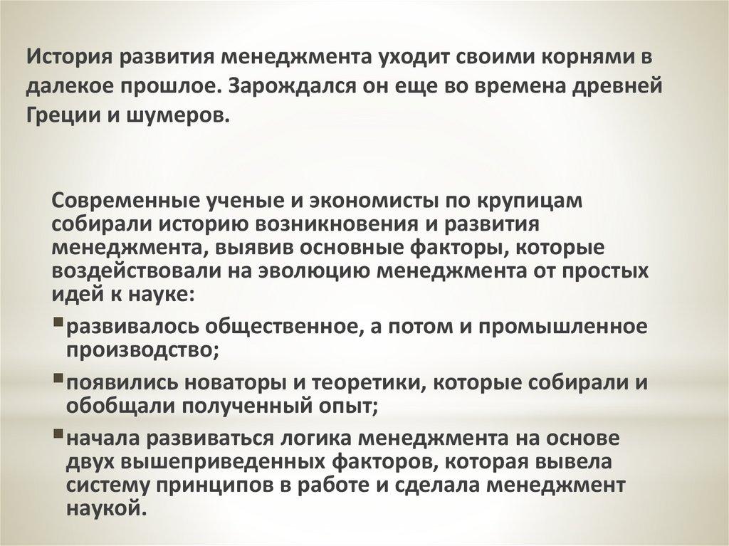 История развития менеджмента уходит своими корнями вдалекое прошлое. Зарождался он еще во времена древней