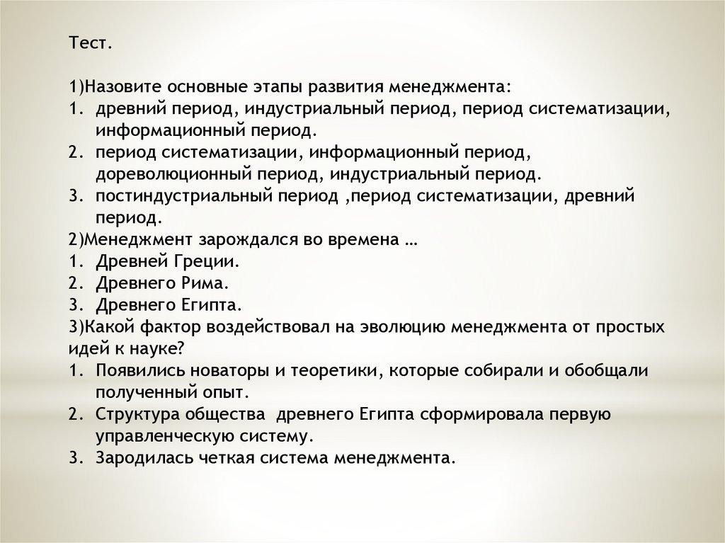 3)Какой фактор воздействовал на эволюцию менеджмента от простых