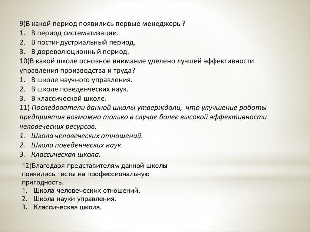 9)В какой период появились первые менеджеры?1. В период систематизации.