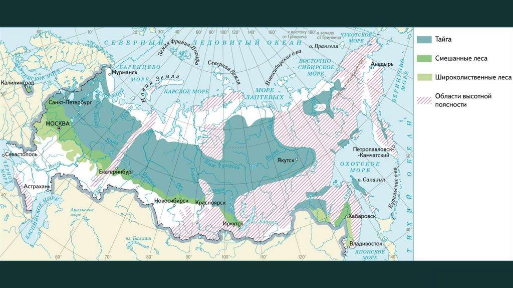 Занимают обширные территории ВосточноЕвропейской равнины.