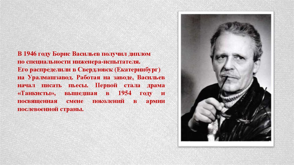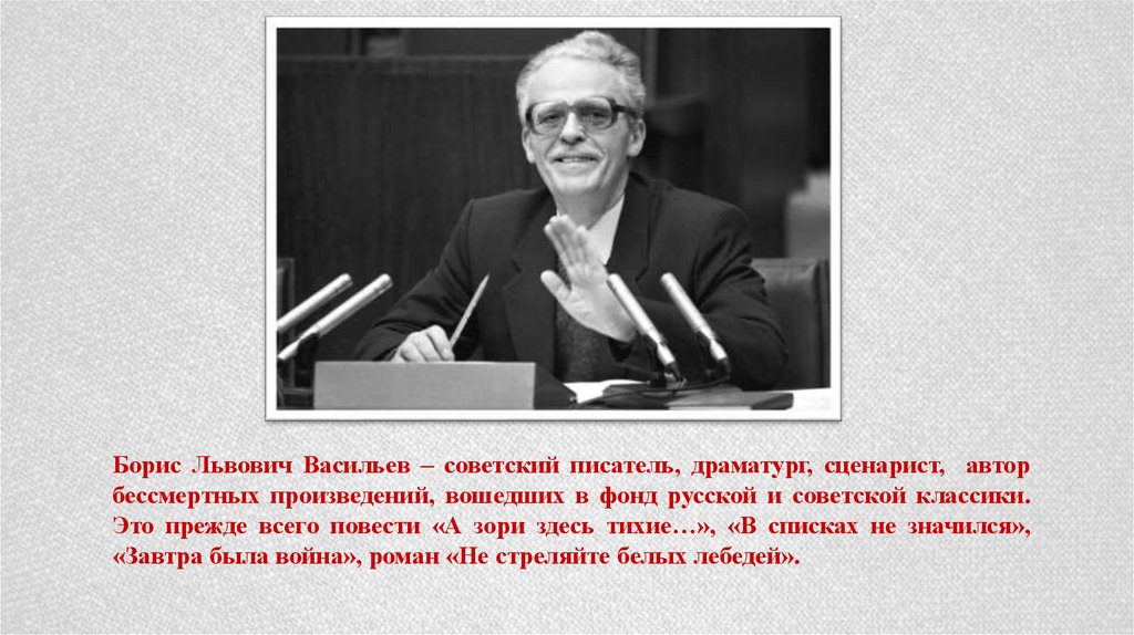 Борис Львович Васильев – советский писатель, драматург, сценарист, авторбессмертных произведений, вошедших в фонд русской и советской классики.