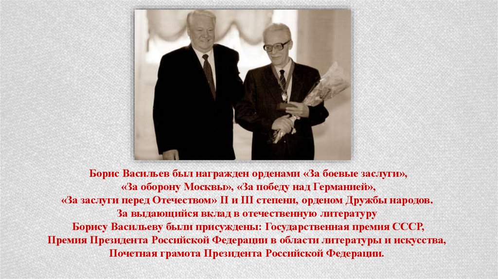 Борису Васильеву были присуждены: Государственная премия СССР,