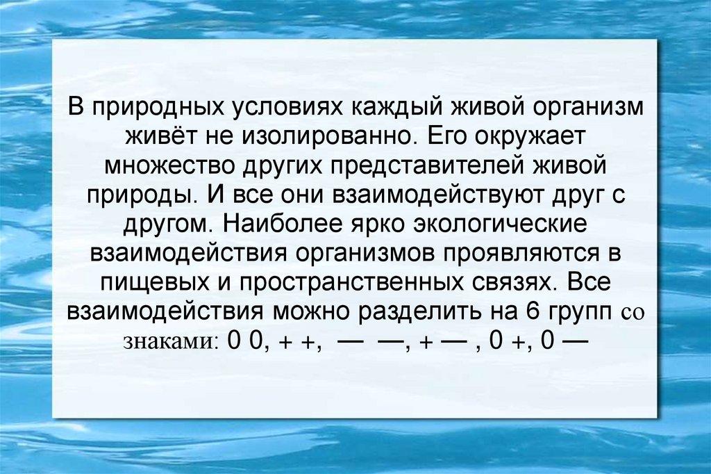В природных условиях каждый живой организмживёт не изолированно. Его окружает