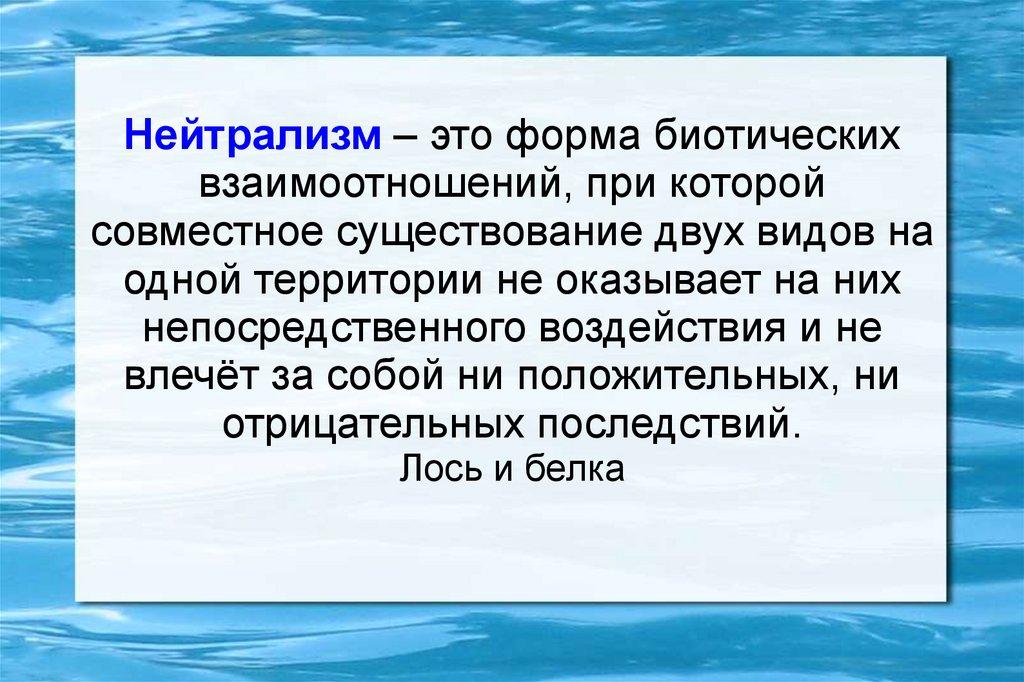 Нейтрализм – это форма биотическихвзаимоотношений, при которой