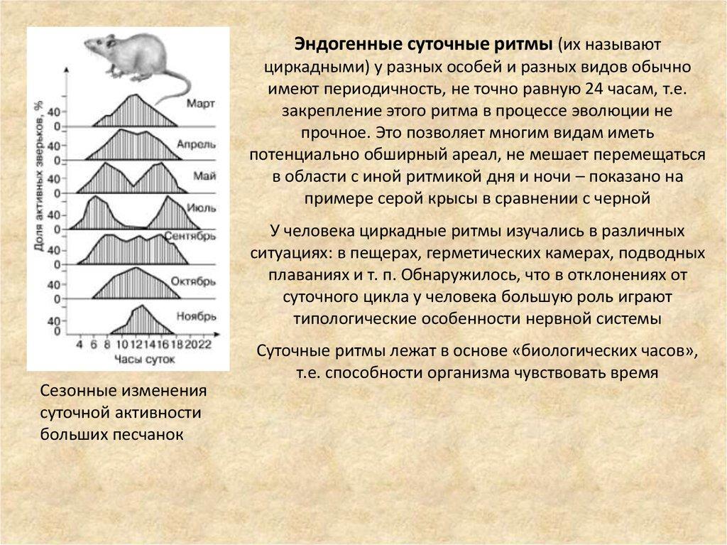 Эндогенные суточные ритмы (их называютциркадными) у разных особей и разных видов обычно