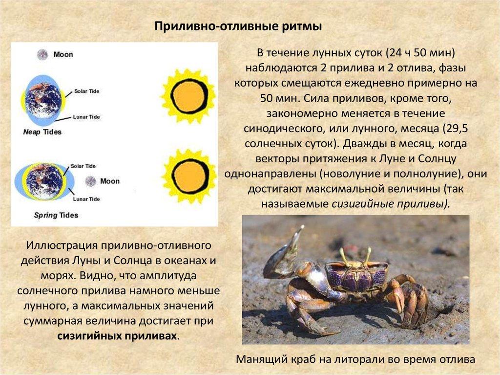 Приливно-отливные ритмыВ течение лунных суток (24 ч 50 мин)