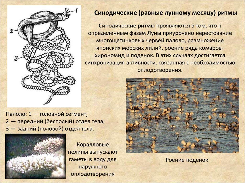 японских морских лилий, роение ряда комаровхирономид и поденок. В этих случаях достигается