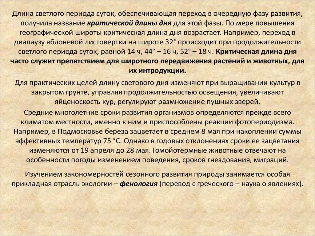 Одним из наиболее точно и регулярно изменяющихся факторов среды является длина