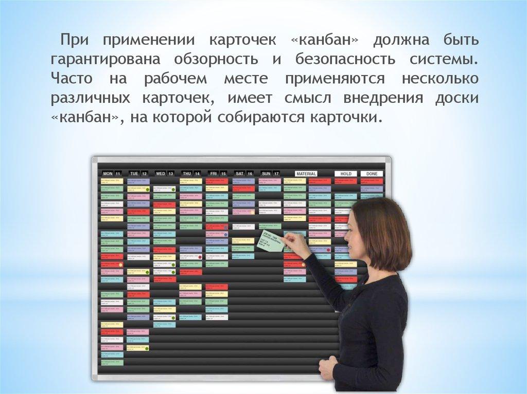 При применении карточек «канбан» должна бытьгарантирована обзорность и безопасность системы.
