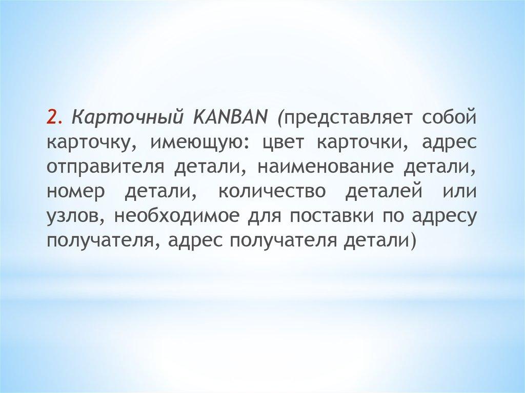 2. Карточный KANBAN (представляет собойкарточку, имеющую: цвет карточки, адрес