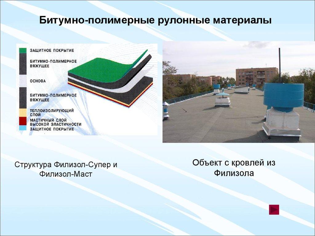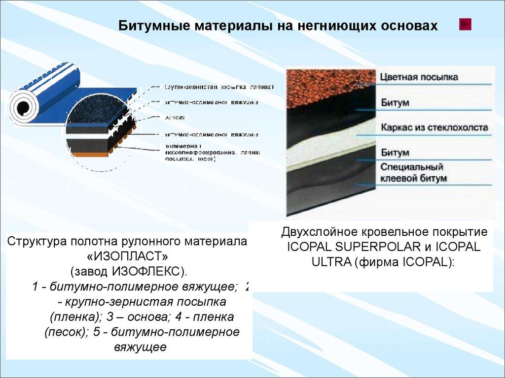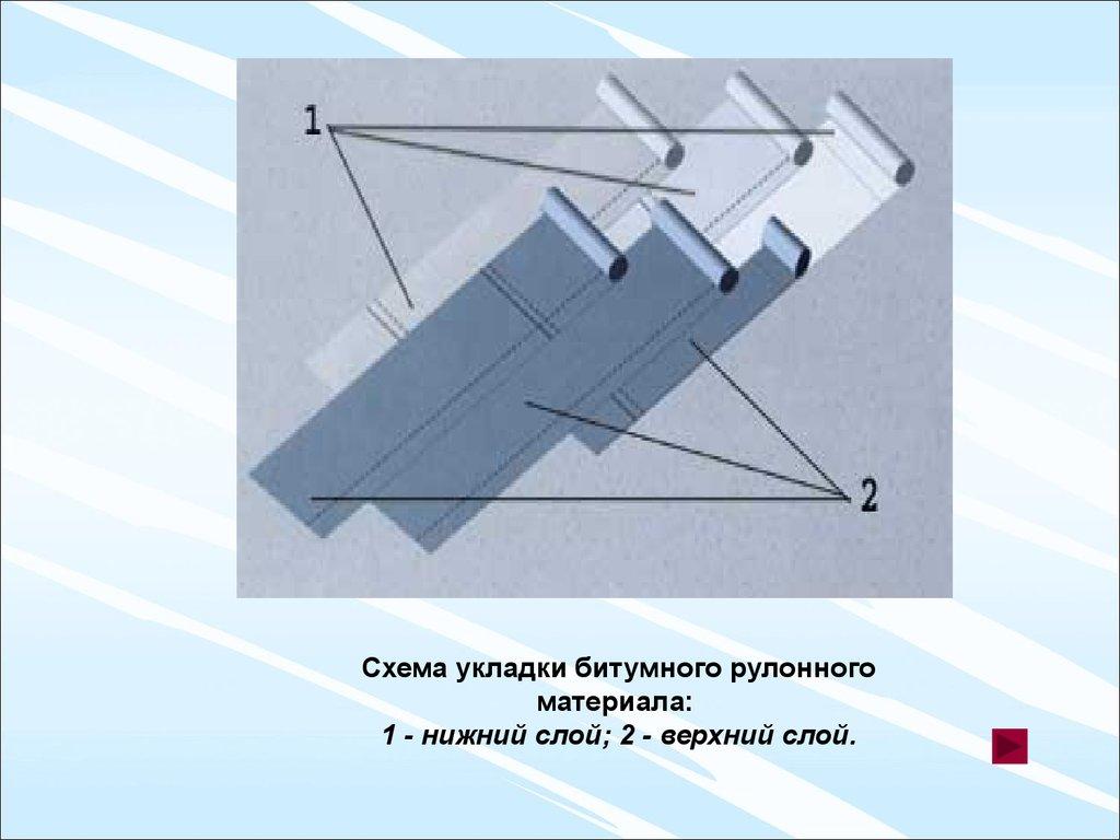 6. Рулонные кровли подразделяют на плоские с уклоном менее 2,5% (1,1 град) и скатные с уклоном более 2,5%. Наибольшие уклоны скатов рулонных кровель