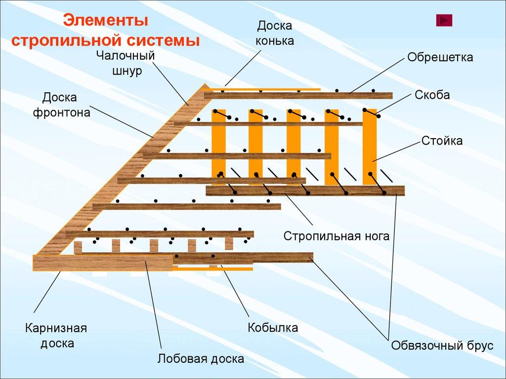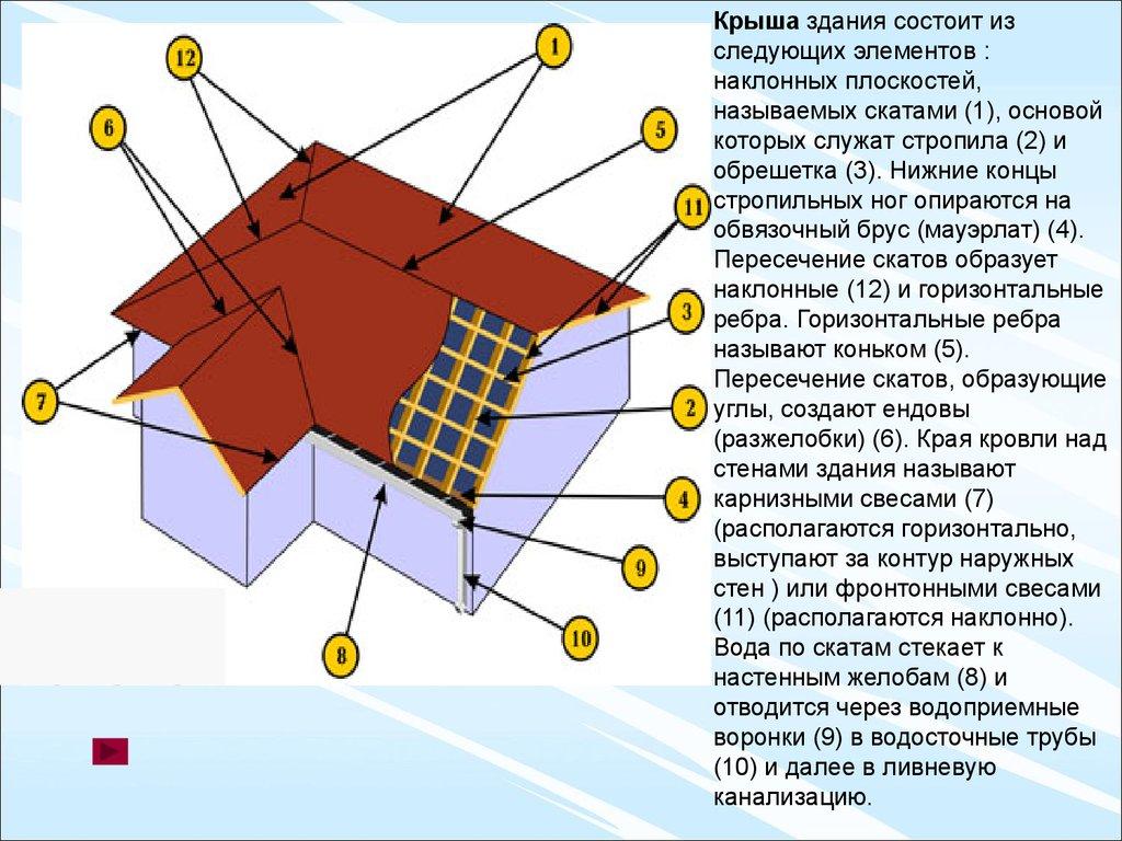 доска)11. Водосточный желоб.12. Водосточная труба.13. Лестница.