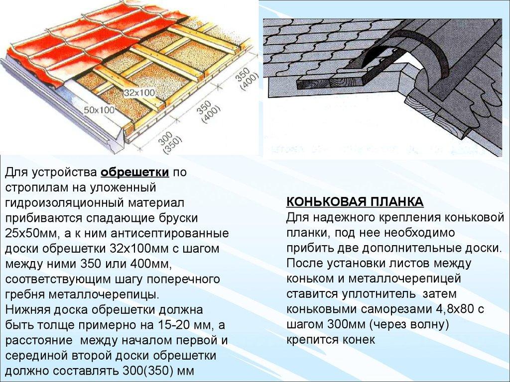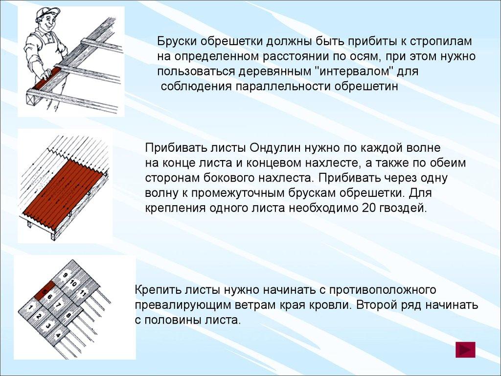 Бруски обрешетки должны быть прибиты к стропиламна определенном расстоянии по осям, при этом нужно