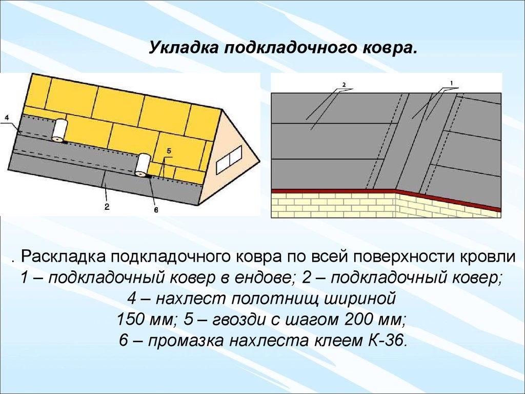 Устройство кровли из волнистых битумных листов.1. Прокладка.( гидроизоляционная пленка (если предусмотрено утепление)