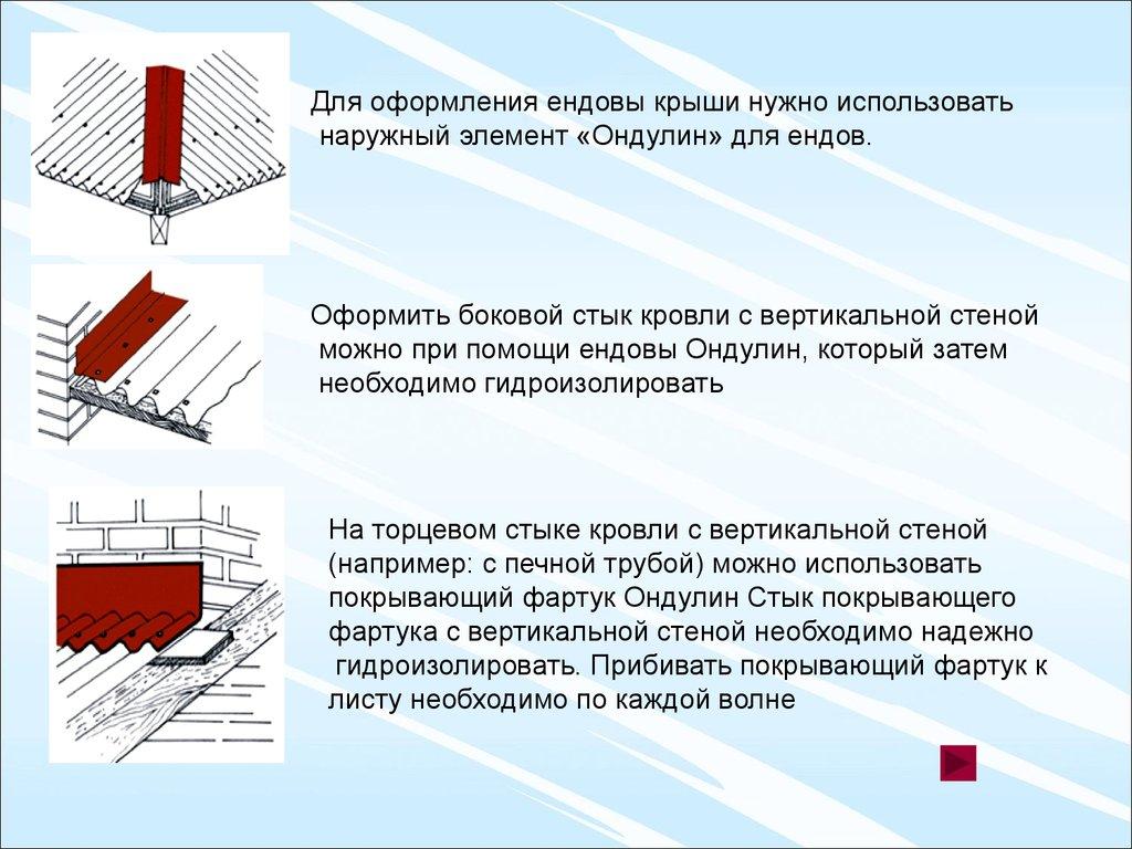 Для оформления ендовы крыши нужно использоватьнаружный элемент «Ондулин» для ендов.
