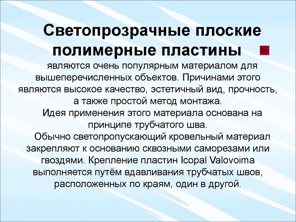 54. Полимерные светопрозрачные кровельные покрытия производятся в виде волнистых листов, сотовых панелей и плоских пластин