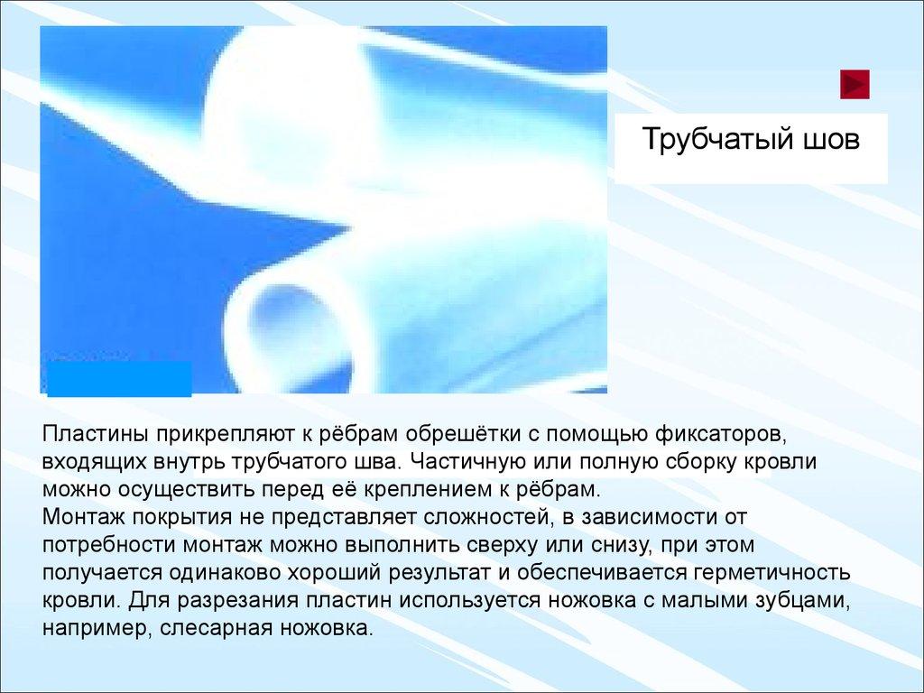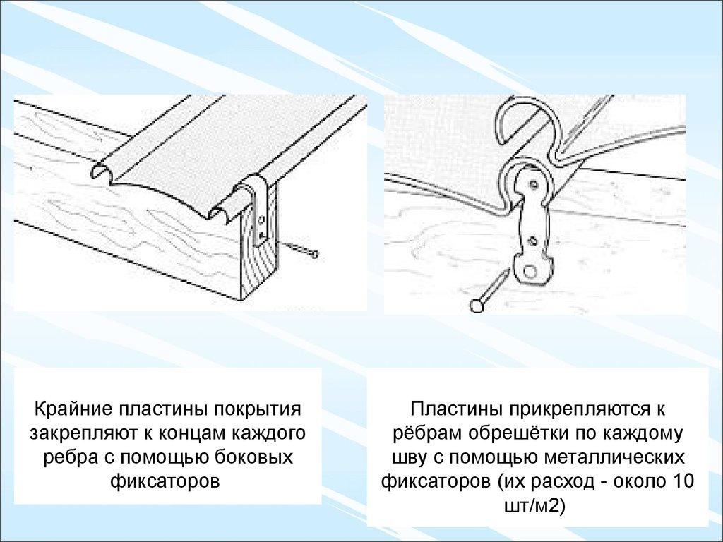 Трубчатый шовПластины прикрепляют к рёбрам обрешётки с помощью фиксаторов,