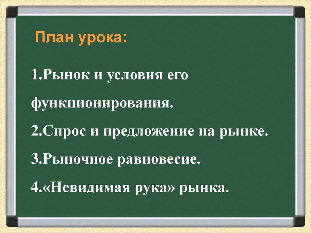 План урока:1.Рынок и условия его