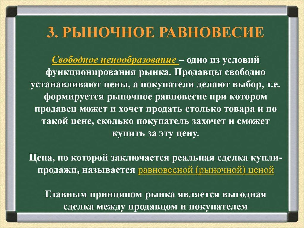 3. РЫНОЧНОЕ РАВНОВЕСИЕСвободное ценообразование – одно из условий