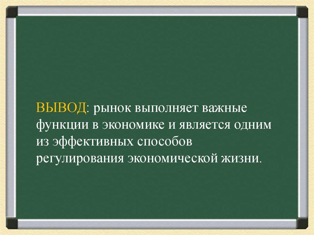 ВЫВОД: рынок выполняет важныефункции в экономике и является одним
