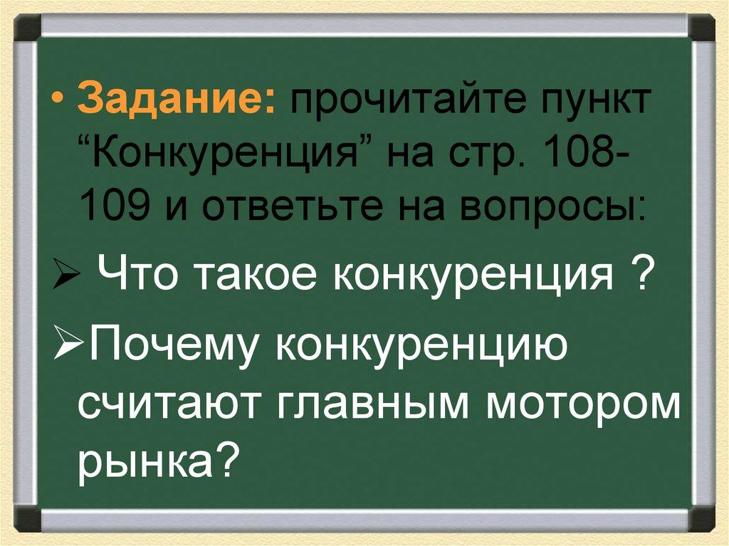 • Задание: прочитайте пункт“Конкуренция” на стр. 108109 и ответьте на вопросы:
