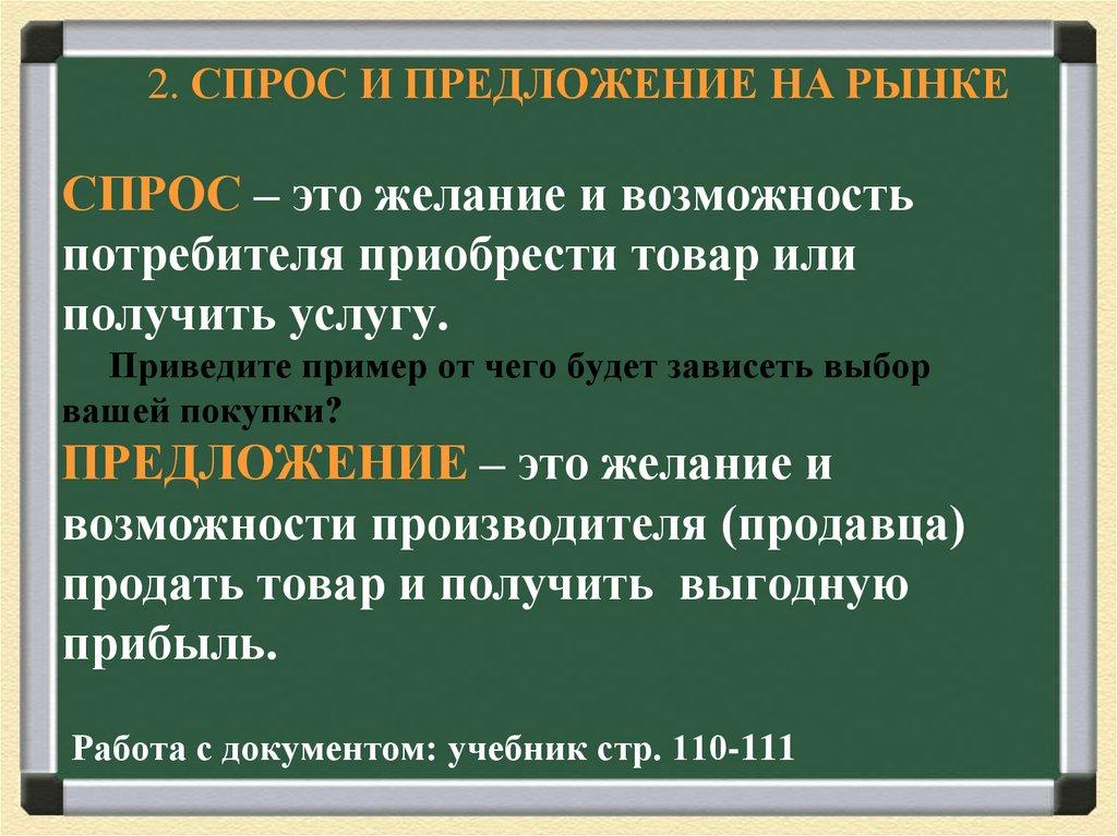 2. СПРОС И ПРЕДЛОЖЕНИЕ НА РЫНКЕСПРОС – это желание и возможность